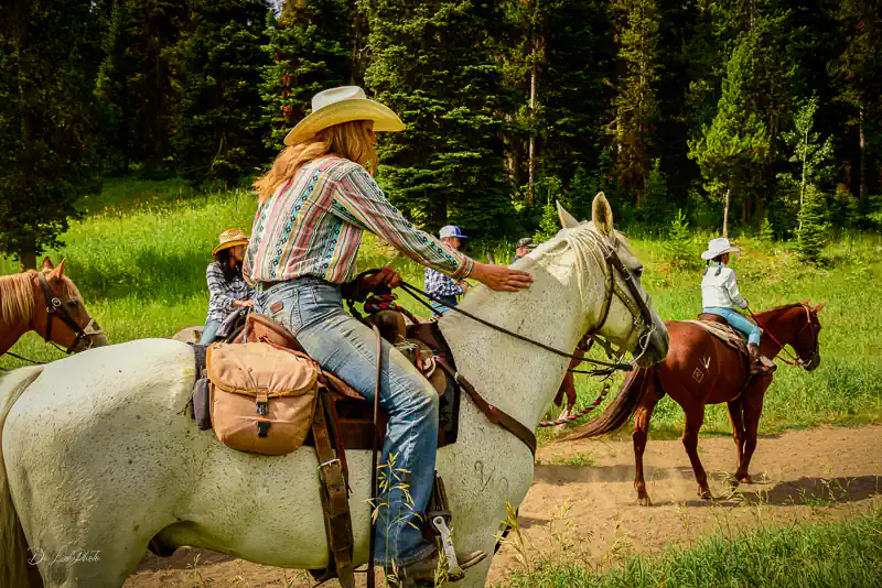 horse rides through beautiful mountains, cowboys, a history of Nez Perce Indians, and the most magnificent Yellowstone National Park in the world, forged along a trail cut through the Diamond P Ranch.